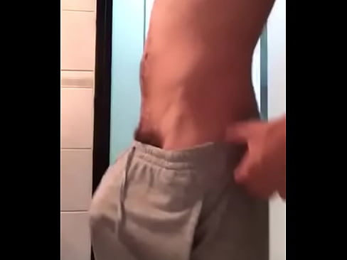 Novinho gay balançando e exibindo o pau na bermuda sem cueca