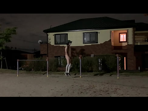 女装子まゆちゃんが深夜の住宅街にある公園で全裸になって鉄棒にまたがり股間を激しく刺激しながら露出プレイを楽しむ