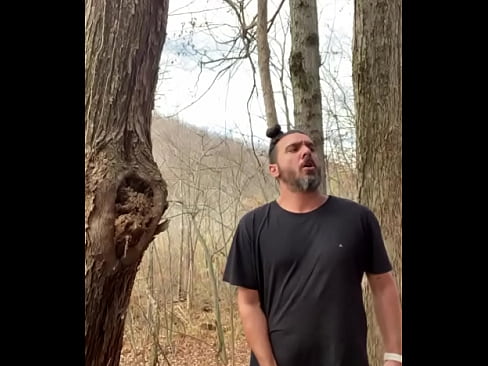 Horny Latino hippie jerking off outside caught in the woods